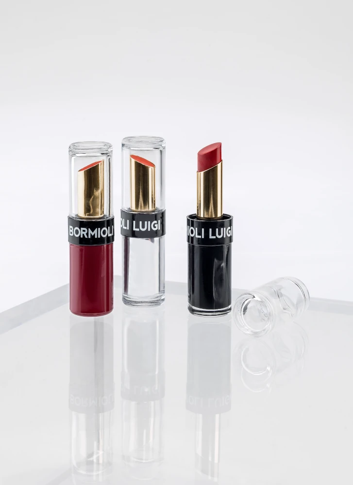 Concernant le rouge à lèvres « Swing », le boîtier est constitué d’une base en verre et d’un capuchon en verre reliés à un insert contenant le tube de rouge à lèvres. Il est rechargeable. la consommatrice de changer le raisin de son rouge à lèvres en fin de vie ou bien d’en alterner la teinte à sa guise tout en conservant son écrin.