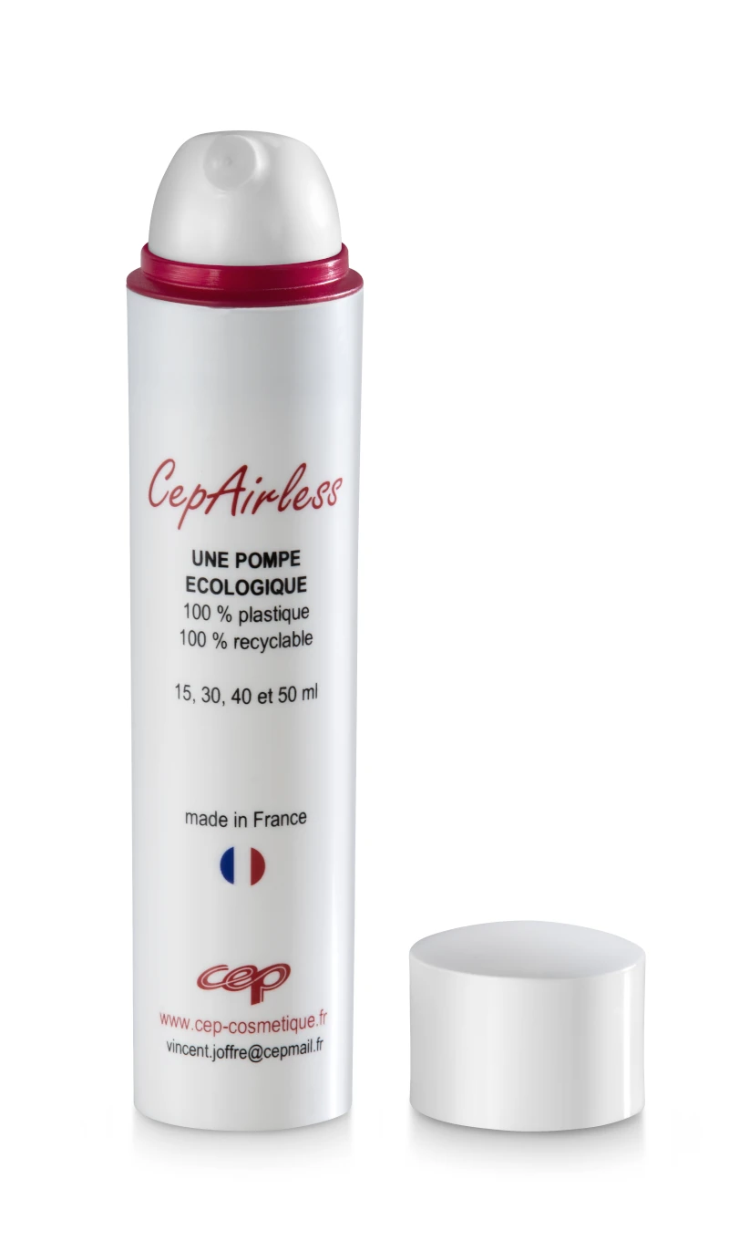 Quant à notre flacon pompe CepAirless Original, il est conçu sans métal (recyclable sur les chaînes de tri actuel). Il permet une restitution de 97% de la crème et peut intégrer jusqu’à 15% de matière PCR ».