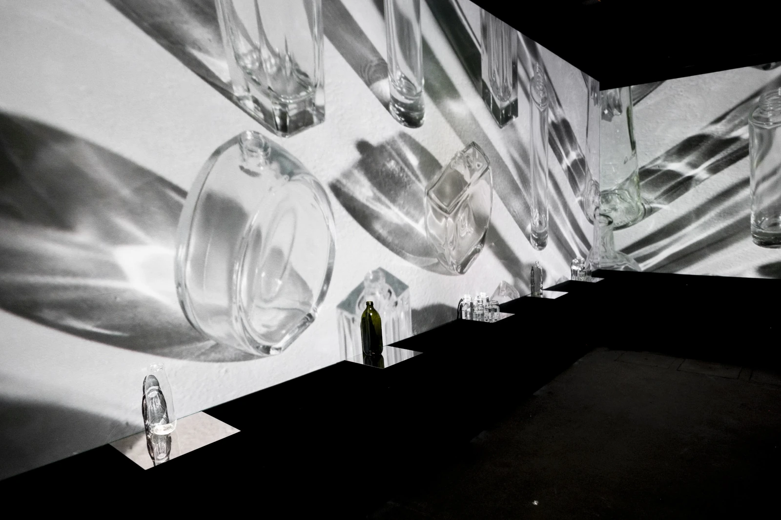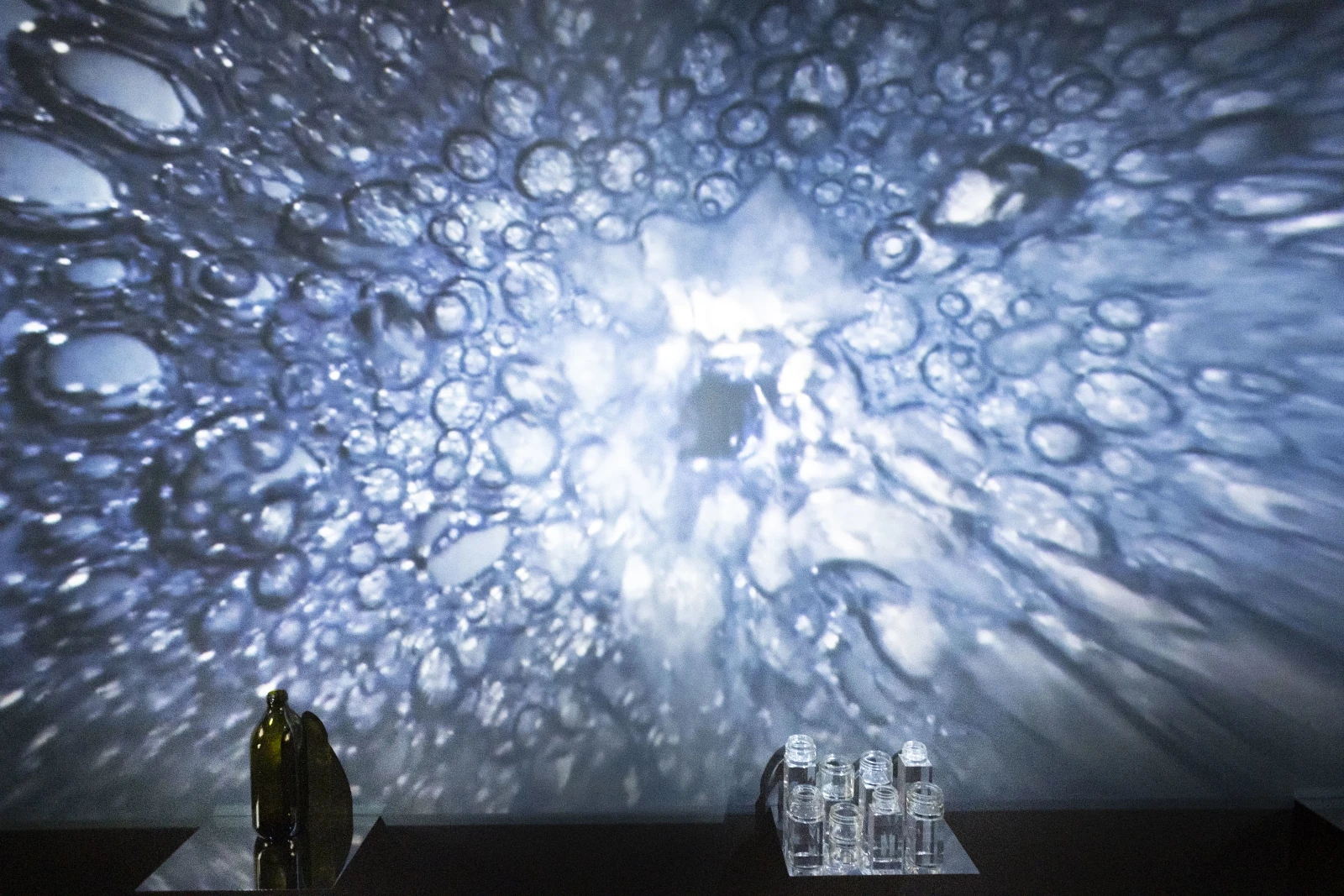 Le voyage dans l’histoire du parfum commencait dans la Salle Blanche, au rez-de-chaussée du musée du Palazzo Mocenigo, avec un vidéomapping immersif signé Zignago Vetro, qui représentait le chapitre moderne de la chronologie et anticipait la partie ancienne du reste de l’exposition. Ce moment d’ouverture plongeait le public dans une expérience synesthésique, le guidant à travers des projections évocatrices et des paysages sonores, de la chaleur de la production moderne à l’histoire millénaire du verre, cette « pierre liquide » qui a toujours conservé les parfums et les souvenirs. Le visiteur se voyait offrir ainsi un récit évocateur dans lequel la vue et l’ouïe se confondaient, restituant la poésie et la puissance du verre, le contenant par excellence pour les parfums.