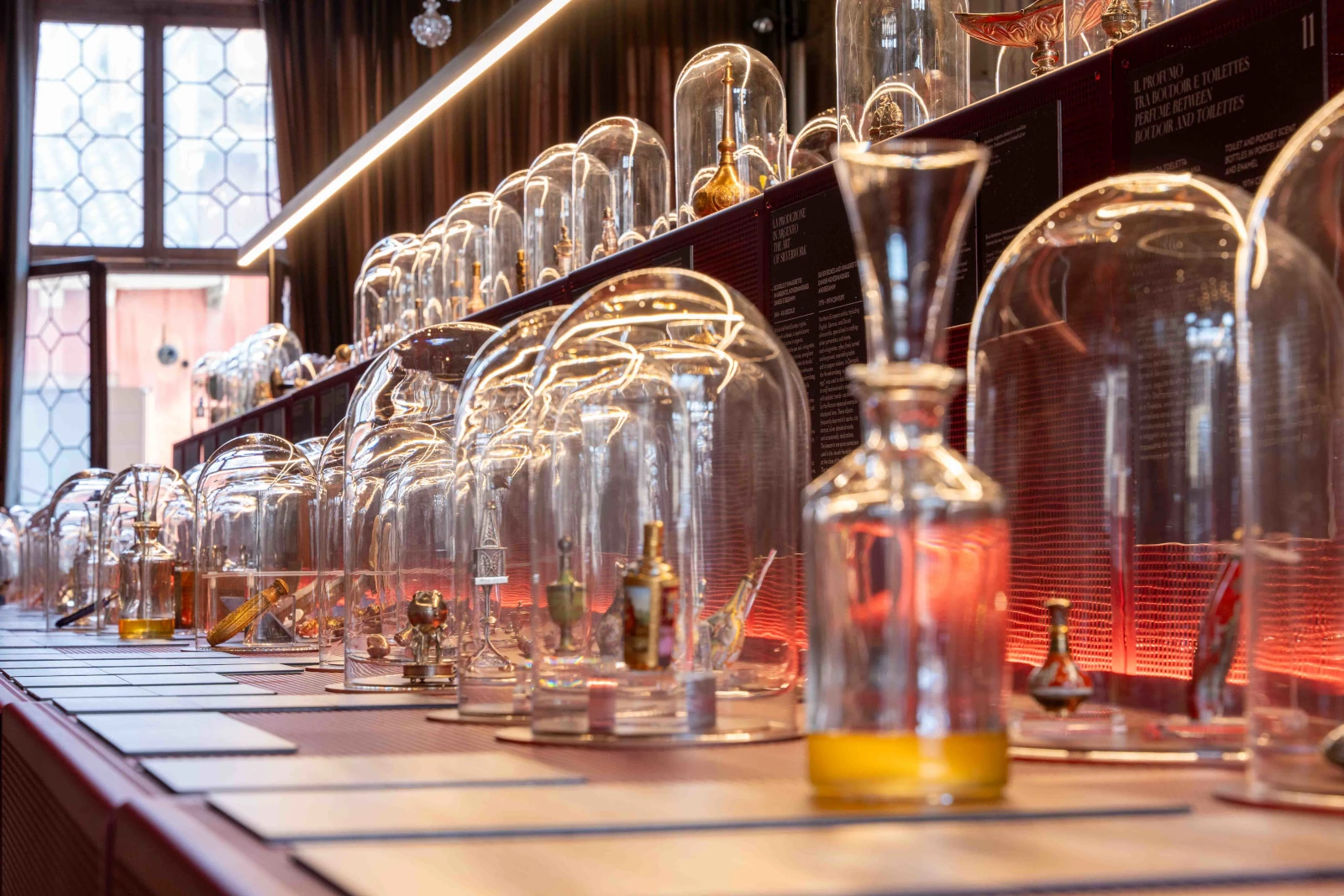 Plus de 500 flacons retraçant plus de six millénaires de culture olfactive, reliés par le fil conducteur « le parfum peut s’estomper, mais le flacon en conserve le souvenir », étaient donc exposés à Venise au musée du Palazzo Mocenigo.